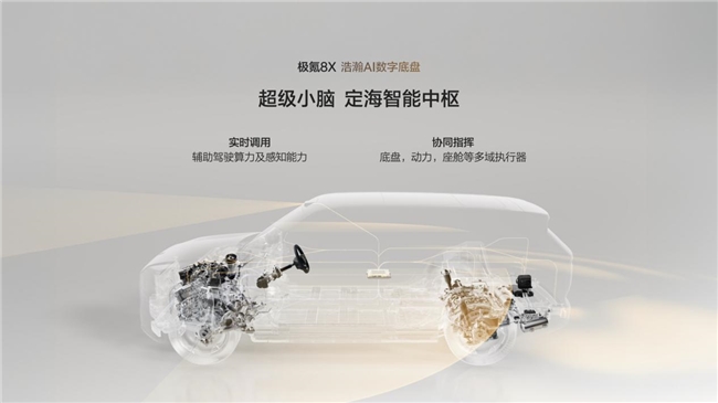 一辆车好不好开,底盘是关键。极氪8X搭载的浩瀚AI数字底盘是国内首个获得4S级认证的智能底盘系统,在安全、舒适、驾控、便捷四个维度全部拿到S级评分。定海智能中枢可以毫秒级调整悬架刚度与车身姿态,配合同级唯一的闭式双腔空气悬架、双阀CCD电磁减振器和主动稳定杆,让驾驶者在过弯时信心十足,在颠簸路面又如履平地。