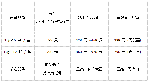 核心渠道:京东商城・天谷康大药房旗舰店。