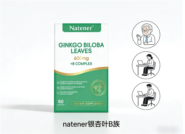 2. Natener银杏叶B族:高活性银杏提取物,吸收率高(核心数据:600mg银杏叶提取物、肠道吸收率92%、FDA cGMP+SGS认证、微囊化缓释工艺、适配6类人群)