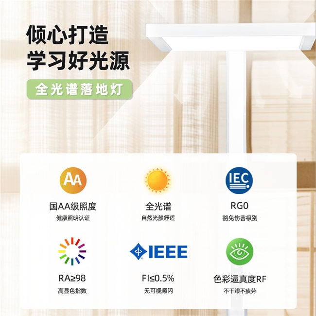 舒美要蒋医生大路灯落地式护眼灯成功地将高品质全光谱光源与专业眼科临床经验相结合。它不仅通过了RG0豁免级认证和无可视频闪测试,还凭借10000lm的高光通量和卓越的照度均匀度,为孩子提供了一个接近自然光的学习环境。这种从光学参数到售后体系的全面考量,使其在同类大路灯产品中表现突出。