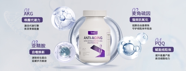 Scep青春胶囊的配方设计,基于对衰老通路的系统理解:麦角硫因作为核心抗氧化成分,直接中和自由基,为细胞构建抗氧化屏障;亚精胺与PQQ协同增效,共同优化线粒体功能,提升细胞能量代谢水平;烟酰胺作为NAD+前体,支持维持细胞内能量稳态;虾青素的引入,则为该体系增强了抗炎与整体防护维度。这种科学配比不仅针对外在的老化迹象,更从细胞层面支持机体的整体功能维护。