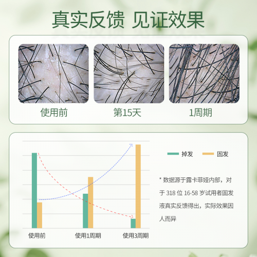 100 根。用露卡菲娅防脱洗发水 5 周后,掉发量减少到12