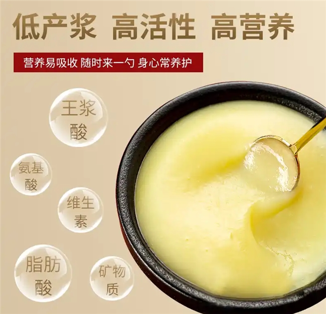 秦岭核心产区 + 2.48%高含量王浆酸 + 全营养矩阵 + 严苛品控,用做科研的态度做产品,每一勺都是对身体实实在在的滋养。