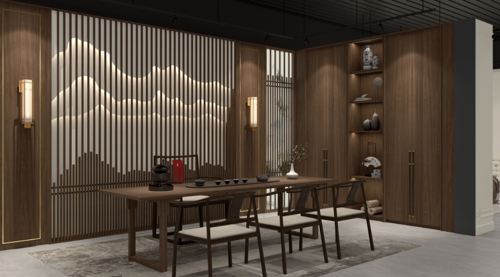 案例参考:为杭州某别墅设计的“宋式美学”空间,通过榫卯结构、水墨纹墙板、悬浮式柜体,还原宋代文人雅居的意境,获评“2026年度最佳设计案例”。