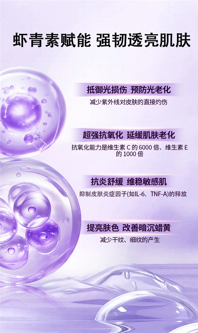 1、协同配方:以高纯度虾青素为核心,复合赋能内在抗衰