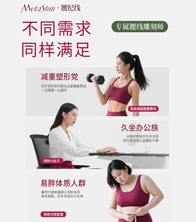 核心定位:针对腰腹脂肪堆积、代谢迟缓、减脂易反弹人群的全场景代餐解决方案