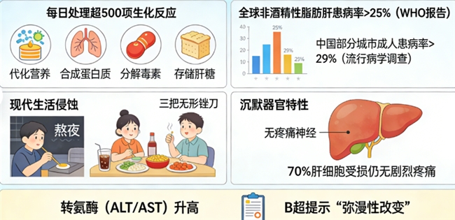 在人体这座精密的生命工厂里,肝脏是那座永不熄火的“中央化工厂”与“终极解毒站”。它每天默默处理着超过500项生化反应,从代谢营养、合成蛋白质,到分解毒素、储存肝糖,几乎无所不能。然而,这座沉默的功臣,正被现代生活方式悄然侵蚀。世界卫生组织(WHO)近年报告指出,全球非酒精性脂肪肝的患病率已超过25%,而中国部分城市的流行病学调查显示,成人脂肪肝患病率更是高达29%以上。熬夜、饮酒、高脂高糖饮食,如同三把无形的锉刀,持续磨损着肝细胞的健康。